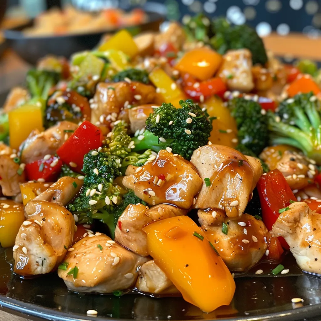 A quick and flavorful chicken stir fry with fresh vegetables and a sweet-savory sauce, perfect for a weeknight dinner.